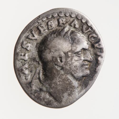 The identification of this coin to the period 72-73 is made by comparison with other examples of the type with complete legends visable. Although this coin lacks the end of the obverse legend it can only have been COS IIII as the reverse has only been recorded with that ending. Vespasian became Consul for the fourth time (COS IIII) in 72 AD and for the fifth in 74.