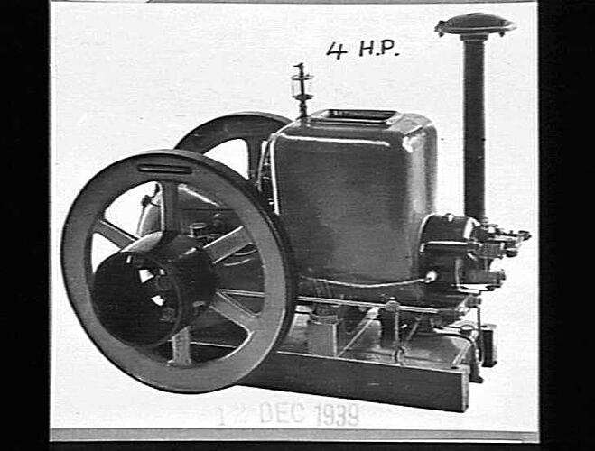 'Sundial' four-stroke single-cylinder horizontal 4 horsepower stationary petrol engine manufactured by H.V. McKay Massey Harris Pty Ltd, at Sunshine Harvester Works, Sunshine, circa 1930s.