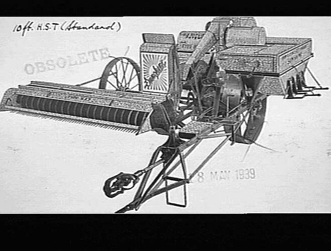 An H.S.T. P.T.O. header, fitted with grain box and two bag-bows.