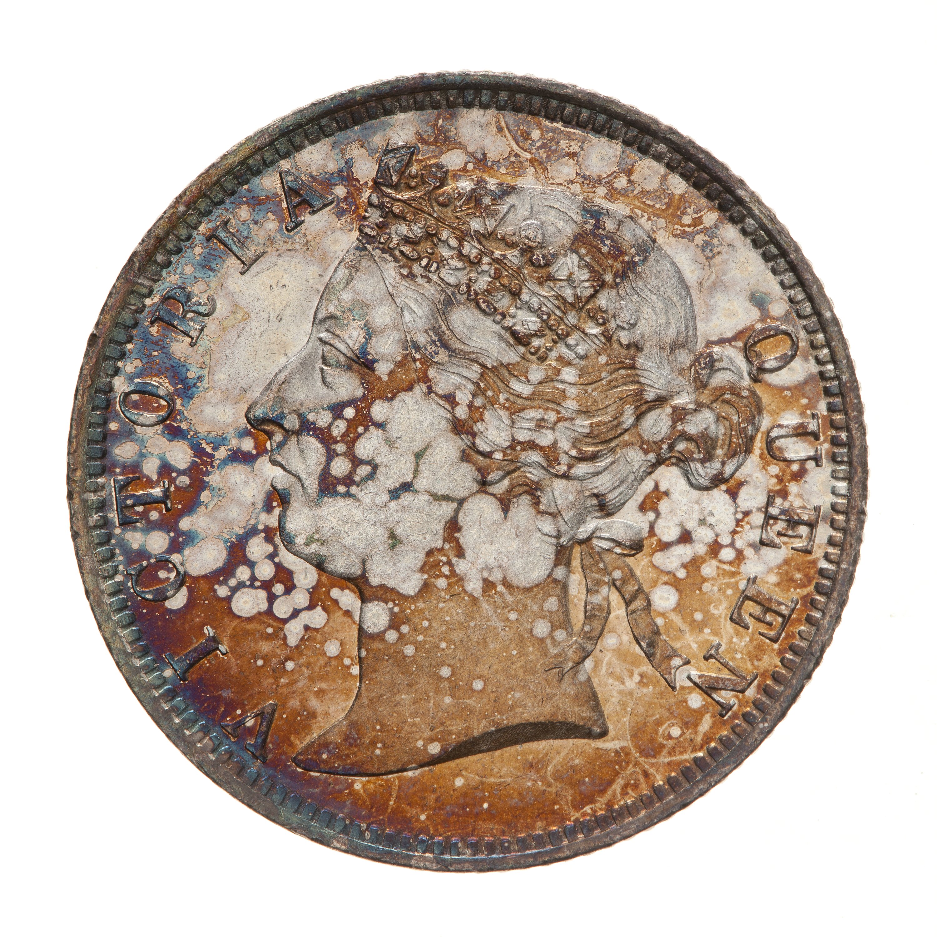 Diademed head facing left; around, VICTORIA QUEEN