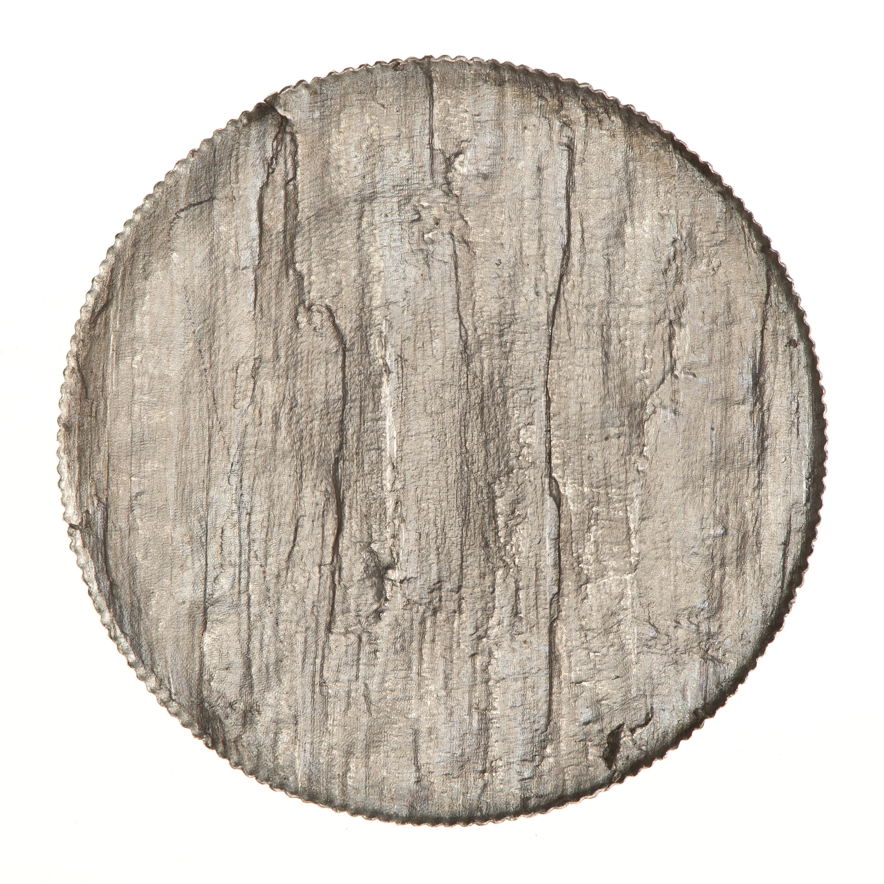 This coin was struck from the end of a casting fillet, characterised by a metal flaw through the centre of the coin. After striking the obverse and reverse seperated leaving on this piece a well struck reverse but only a ghost of the obverse. The coin is, as expected, about half of the standard weight.