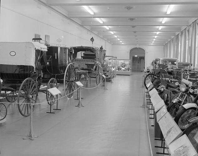 Museum History, Exhibitions, Displays, Transport Studies, Interior Views, Horsedrawn Cabs, Horsedrawn Vehicles, Horsedrawn Vehicles, Wagon Wheels, Carts, Carriages, Motor Bikes, Motor Cycles, Motor Vehicles, Travel