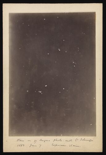 Experimental photograph of Eta Argus Nebula taken by Joseph Turner with the Great Melbourne Telescope, 7 January 1883.