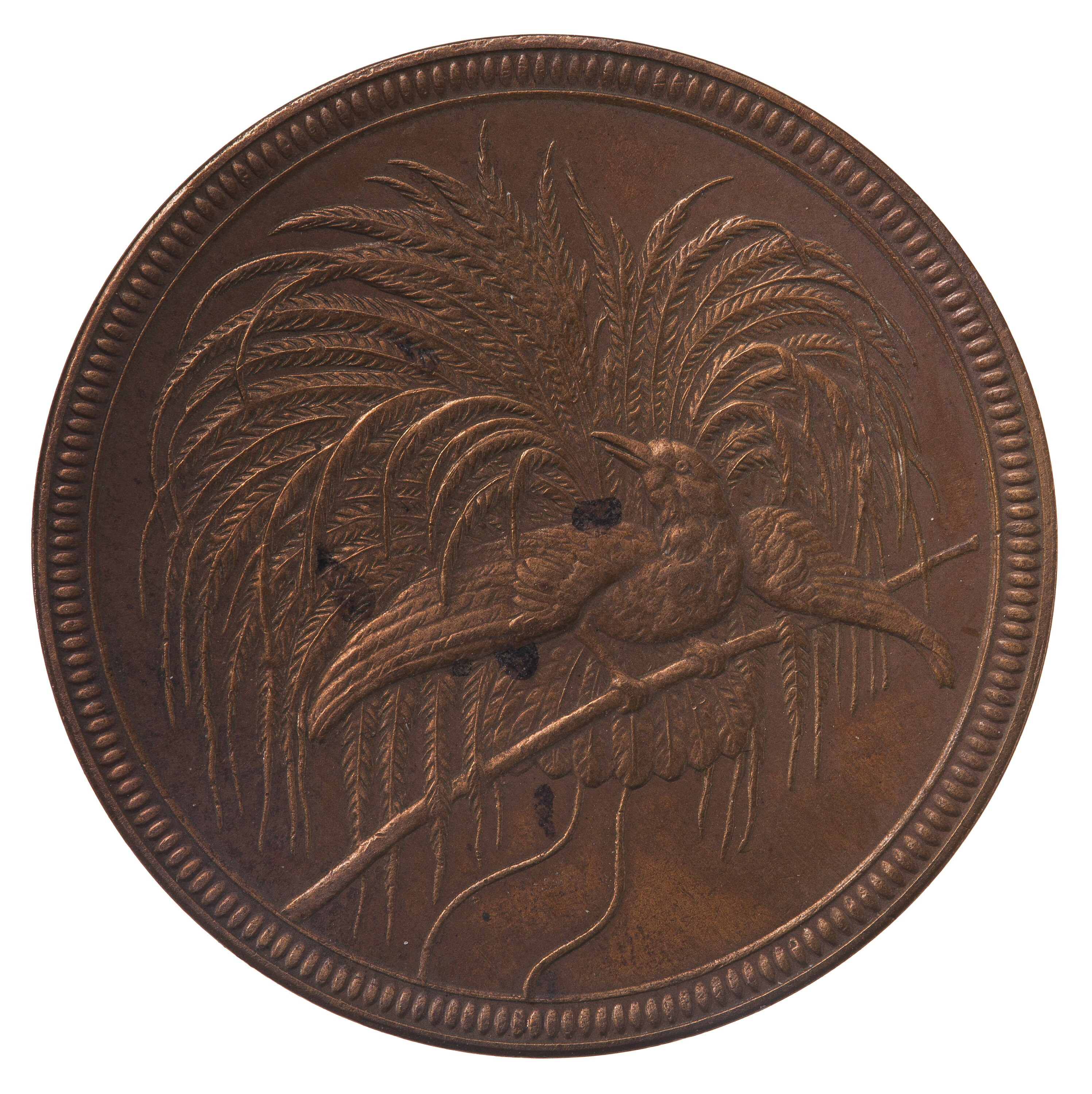 Within wreath, 10 / NEU GUINEA / PFENNIG / 1894; above, NEU GUINEA COMPAGNIE; below, A