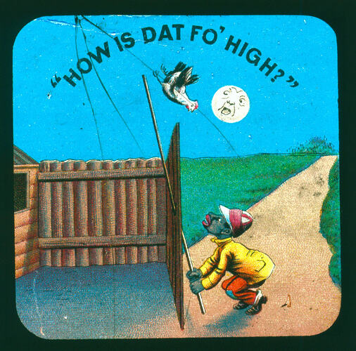 Note: This object includes a derogatory depiction of a particular cultural group. Such depictions are not condoned by Museums Victoria which considers them to be racist. Historical distance and context do not excuse or erase this fact.