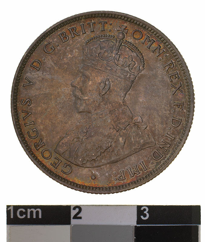 Obverse: GEORGIVS V D. G. BRITT: OMN: REX F. D. IND: IMP: Reverse: ONE FLORIN - TWO SHILLINGS 1922 ADVANCE AUSTRALIA