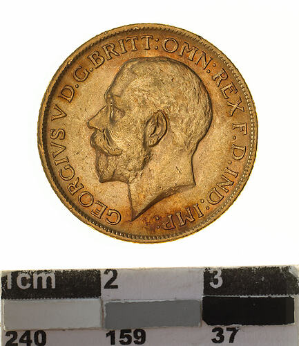 In August 1916, as a direct result of World War I, the Department of the Treasury notified the Melbourne Branch of the Royal Mint that from that date all gold deposited was to be paid for by cheque instead of gold coin. All gold produced in Australia would henceforth become the property of the Commonwealth. It would continue to be struck into sovereigns but these would be delivered to the Treasury. See supplementary file for copies of related documents.