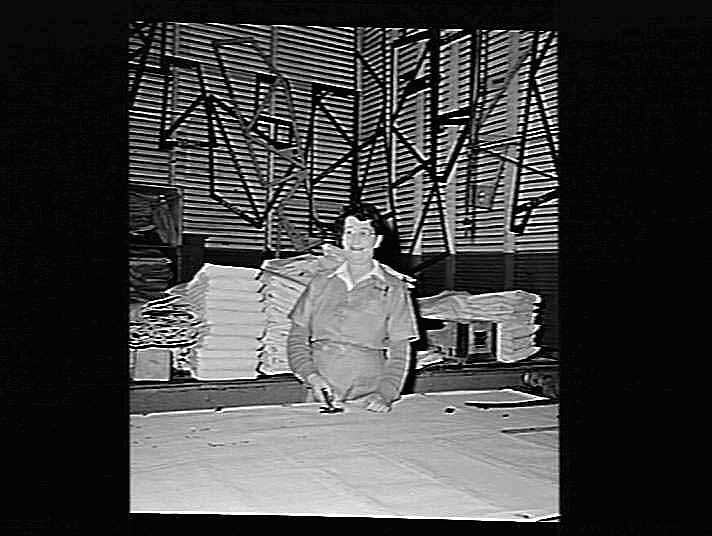 Negative of Ivy Rewell who was the forewoman of the Sunshine Harvester Works' Roller Bearing and Canvas Shop. She joined the company in 1924 and remained with them until 1965. She also worked in the company's Bolt Shop.