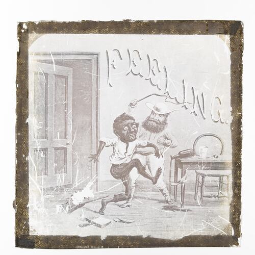 This lantern slide is part of the Francis Collection of pre-cinematic apparatus and ephemera, acquired by the Australian and Victorian Governments in 1975. David Francis was the curator of the National Film and Sound Archive of the British Film Institute as well as being a co-founder of the Museum of the Moving Image in London, which was operational between 1988 and 1999.