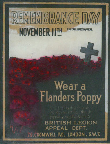 Text, on slide: 'REMEMBRANCE DAY / NOVEMBER 11TH EARL HAIGH'S APPEAL / Wear a / Flanders Poppy'.