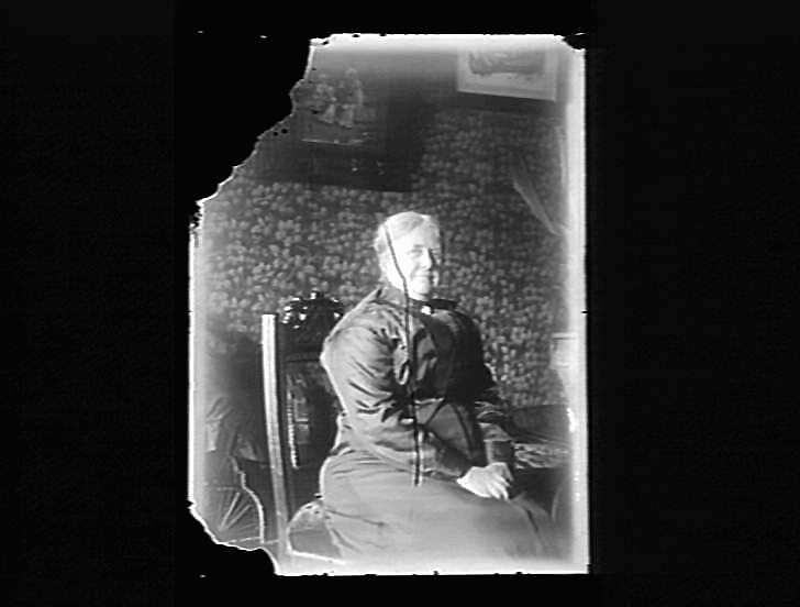 PORTRAIT WOMAN SEATED. EMULSION DAMAGE TO LEFT HALF PLATEASS NEGATIVE.