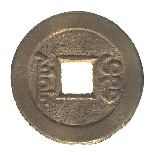 Plain (edge) Around central square hole, Tao-Kuang T'ung-pao (obverse) At sides of central hole in Manchu letters, Boo-Ciowan [Board of Revenue] (reverse)