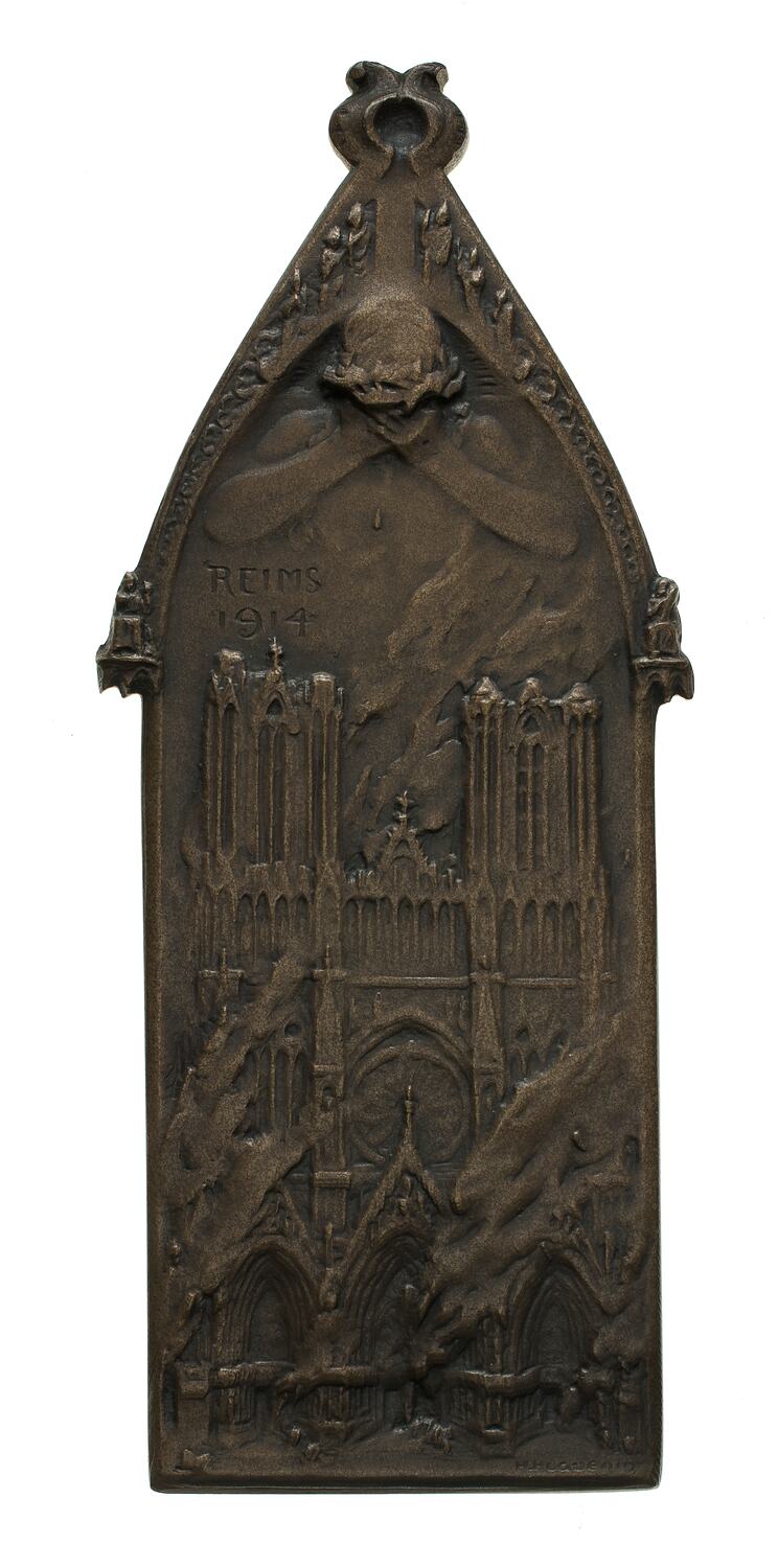 Destruction of Rheims Cathedral medal, France, 1914.