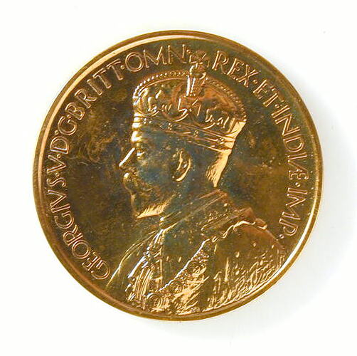 A gilt bronze medal (44 mm. diameter) featuring a crowned bust of King George V