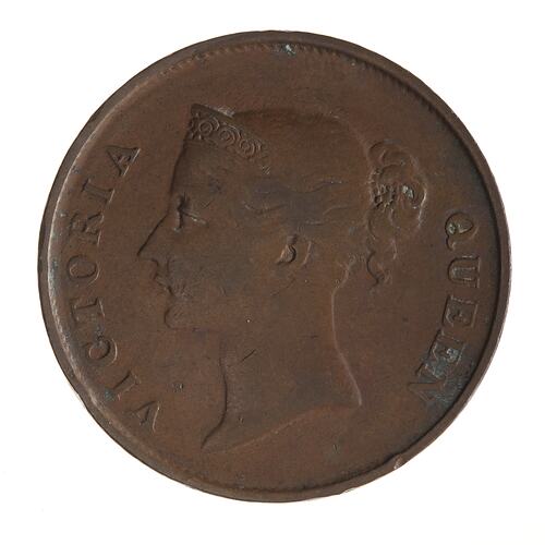 1 Cent, Issued by Straits Settlements, Malaysia, Penang, Malacca, Singapore, 1845