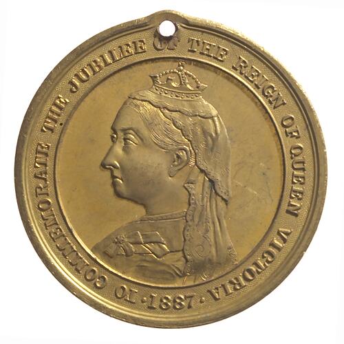Other Details: Geelong Jubilee Exhibition medal, issued in 1887. The exhibition was one of many events that commemorated Queen Victoria's jubilee.