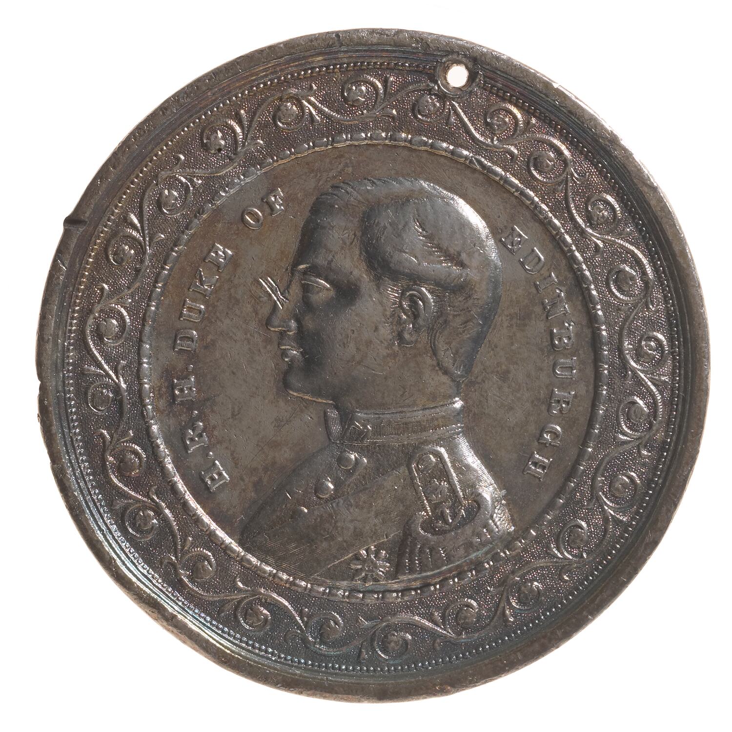 Other Details: Alfred, Duke of Edinburgh, Queen Victoria's second son, was Australia's first royal visitor. Arriving in 1867, he stayed for six months. This medal was the first of four versions issued. It features HMS Galatea, a ship driven by both steam and sail. During his visit to Sydney there was an attempted assassination of the Duke, who received a bullet wound to the back.