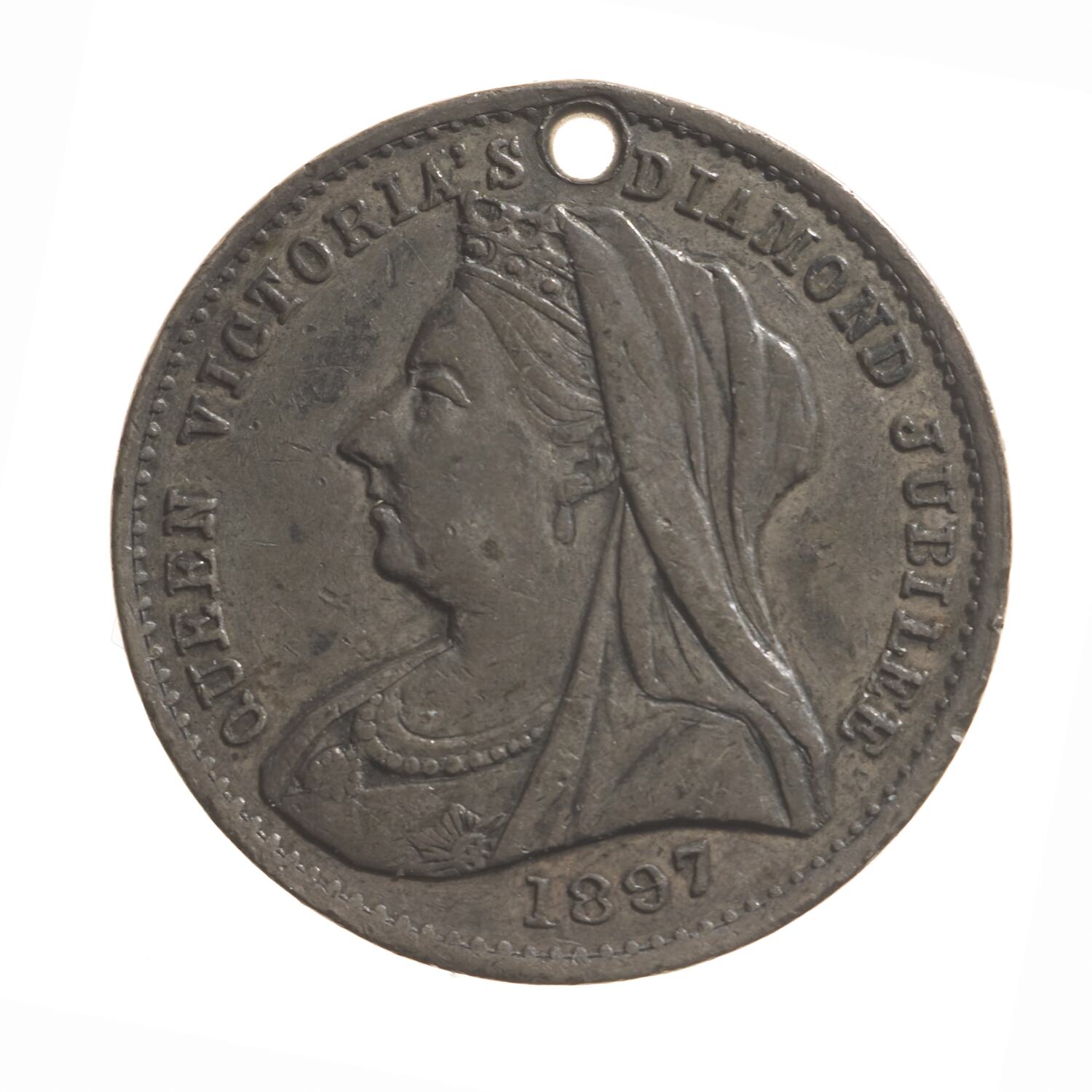 Veiled bust of Queen Victoria facing left; around above, QUEEN VICTORIA DIAMOND JUBILEE; below, 1897