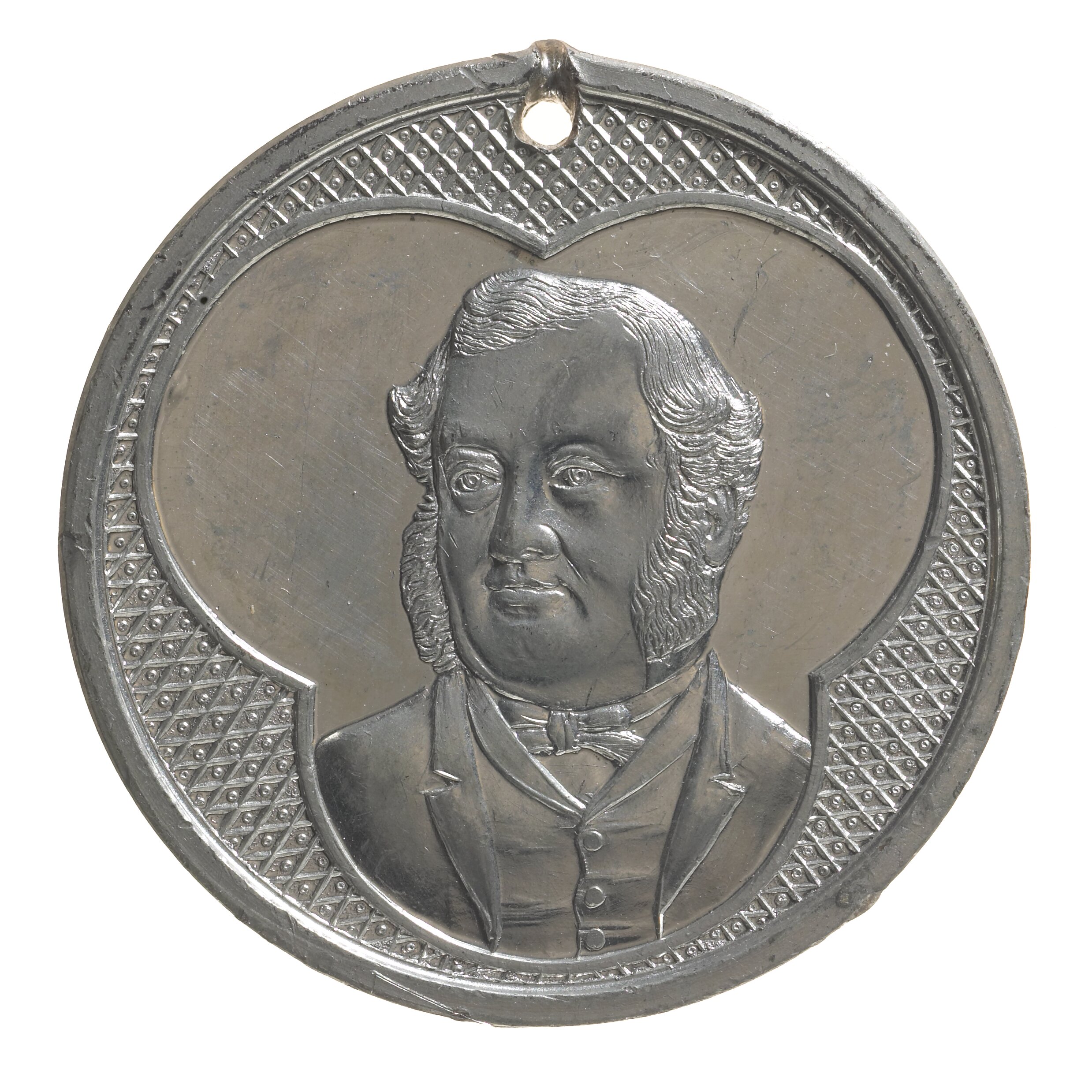 Medal issued to commemorate the 50th anniversary of Edward Henty's arrival in Portland, Victoria. Edward Henty was born in England in 1809 and migrated to Australia, as did his parents and brothers, in 1829. On 19 November 1834 he sailed from Launceston in the Hentys' own schooner, the Thistle, with stock and a small party. His brother Francis followed the next month with a small flock of merino sheep, the first in Victoria. The Henty brothers began whaling at Portland Bay and took their flocks and herds inland to the rich area on the Wannon River. In the 1840s they were eventually granted pre-emptive rights over most of their lands. Henty was known as a capable and energetic man and regarded as the chief actor in the early history of Portland Bay. He and his wife Anne Marie Gallie moved to Muntham, a 60,000-acre property that became widely known for its merino sheep and Durham cattle. It was also known for its extravagent hospitality - to which Henty's social ambition and vanity contributed considerably. This extravagence and Henty's obstinacy eventually led to the degredation of the flocks. Henty lived in Portland and in his Melbourne mansion, Offington, while he served as a member of the Victoria Legislative Assembly. He died on 14 August 1878.