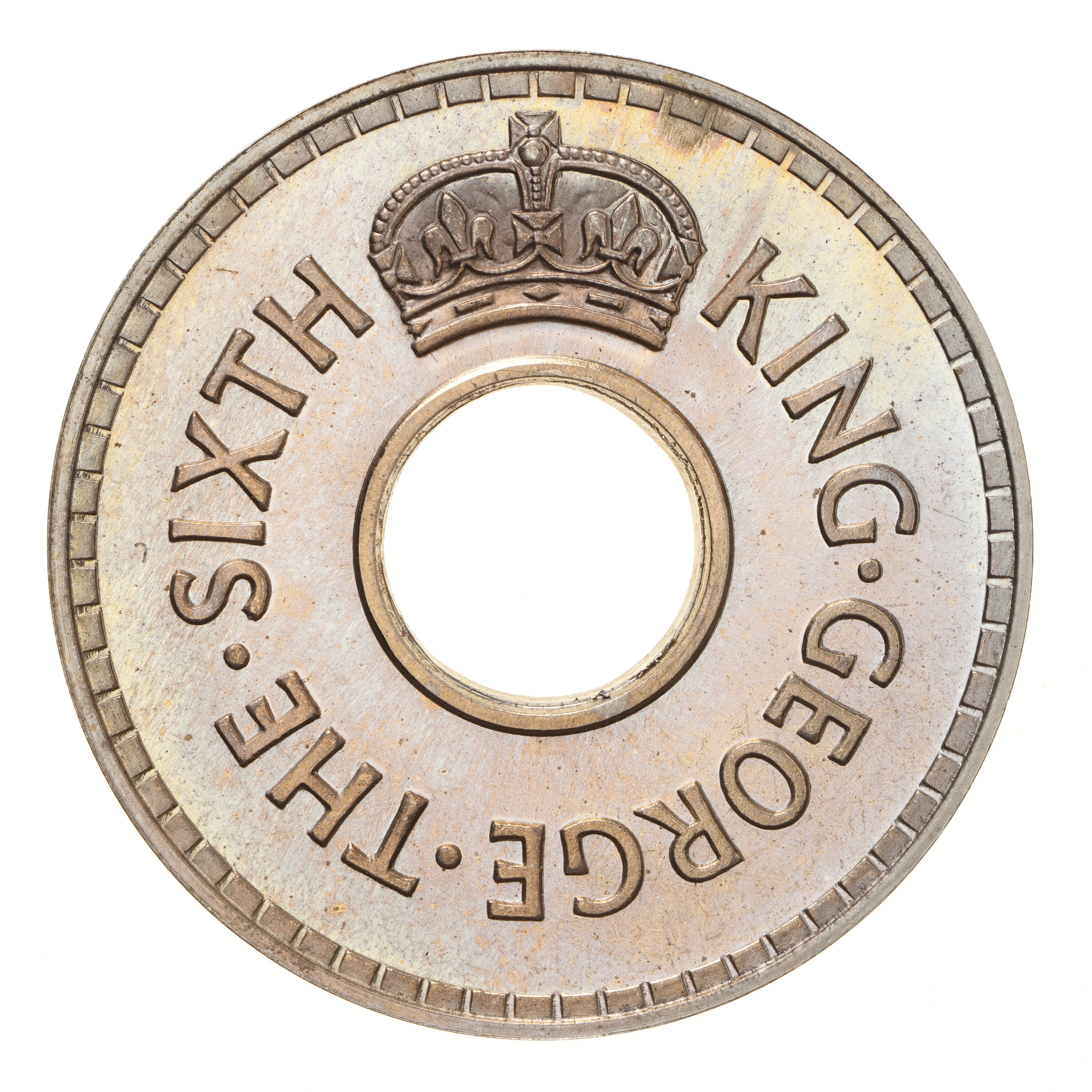 Above central hole, a crown; around, KING GEORGE THE SIXTH