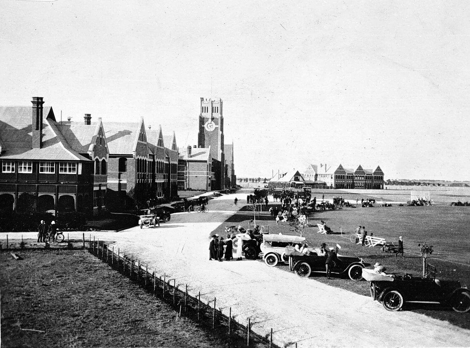 Geelong Grammar School. There are a number of cars drawn up on the right.