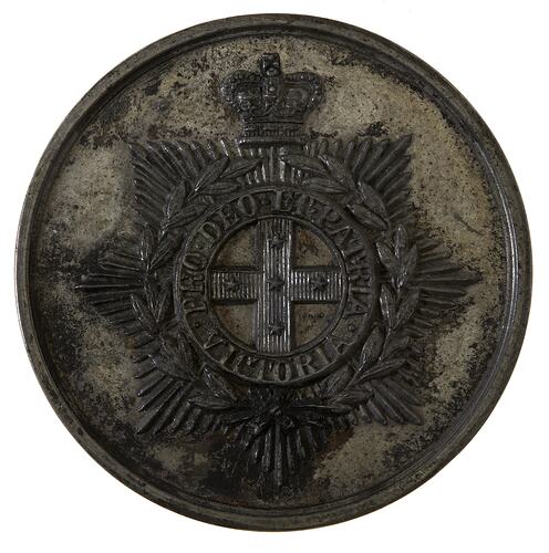 Plain (edge) Badge of the Victorian Rifles Assoc., and motto PRO DEO ET PATRIA VICTORIA (obverse) BRASSEY FIELD FIRING & MARCHING COMPETITION/WON BY/25. MAY. 1896 Wreath (reverse)