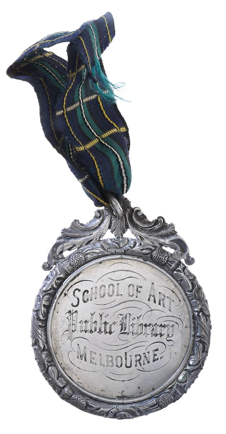 Silver disc engraved: SCHOOL OF ART / PUBLIC LIBRARY / MELBOURNE