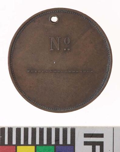 Obverse: 8 8 8 MELBOURNE WHARF LABORERS UNION 1885 Reverse: No. / ------------