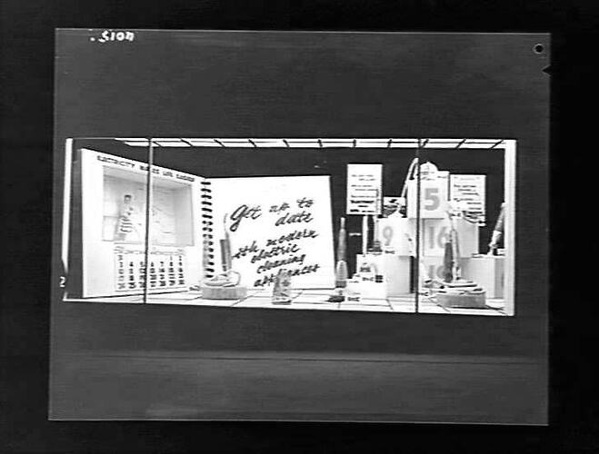Display window - Flinders Street. 'Get up to date with modern electric cleaning appliances'.