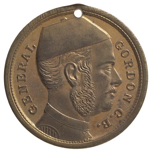 Bust of General Gordon wearing cap, right; around, GENERAL GORDON C.B.