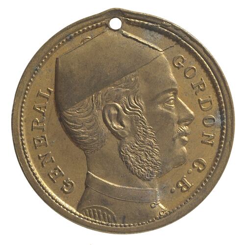 Bust of General Gordon wearing cap facing right; around, GENERAL GORDON C.B.