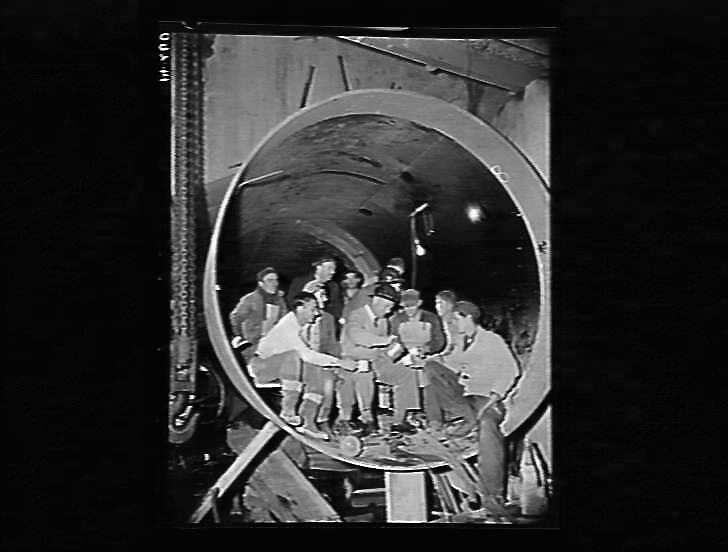 Workers taking tea in pressure tunnel, Kiewa no.4 Power Station.