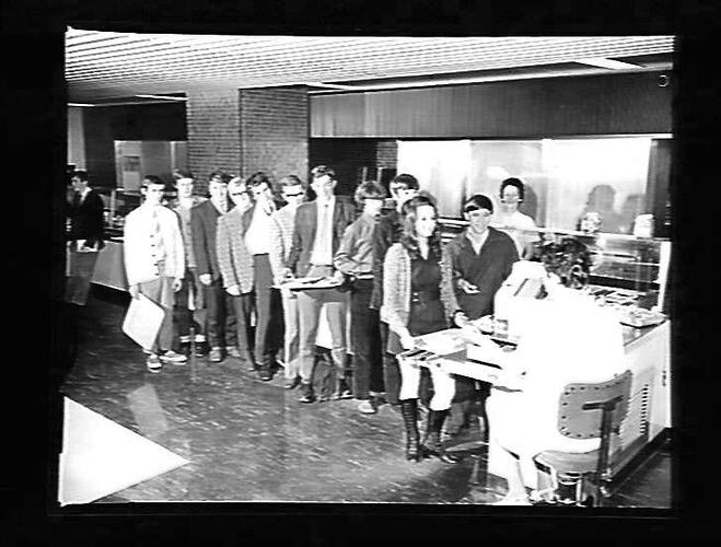 Cafeteria - queue at cash register.