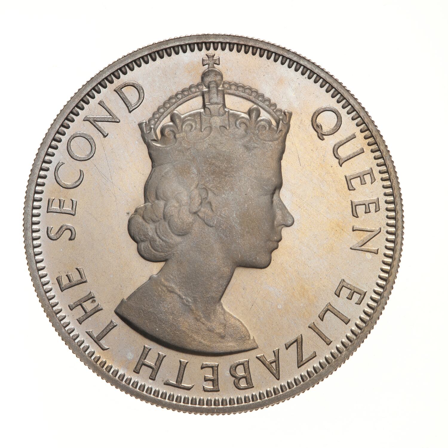 The last issue of a 50 cent denomination in British Honduras had been in 1919. This new issue was 28 mm instead of the previous 30 mm diameter and cupro-nickel.