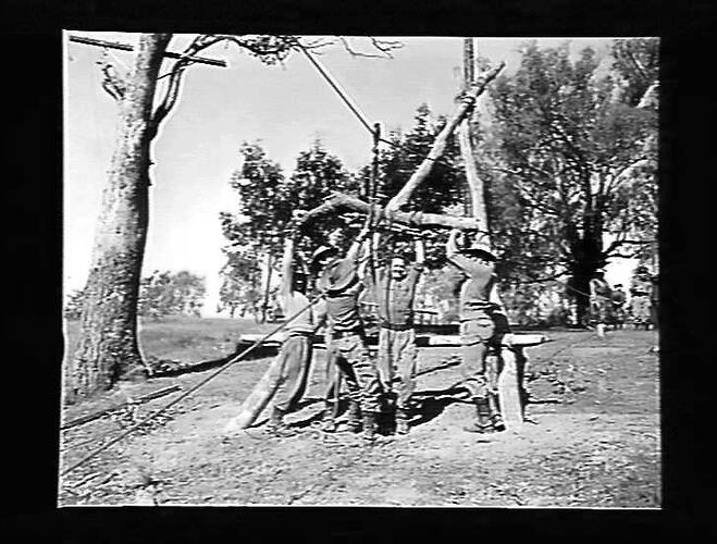 Soldiers working with block and tackle.