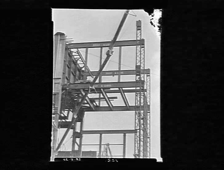 Construction of Yallourn 'B', probably the boiler house upper levels. (NB: negative damaged at upper right corner).