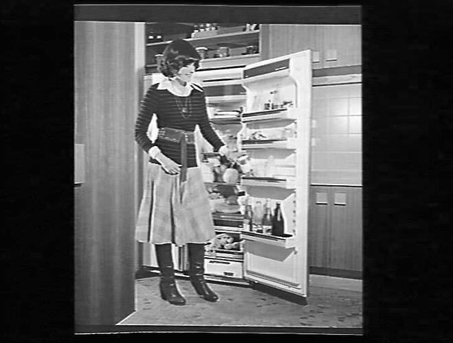 House, Silvan; woman at refrigerator.