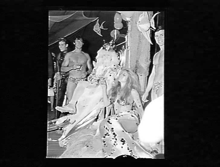 Fishbowl Neptune promotion: 'Mermaid' with King Neptune and male Models.