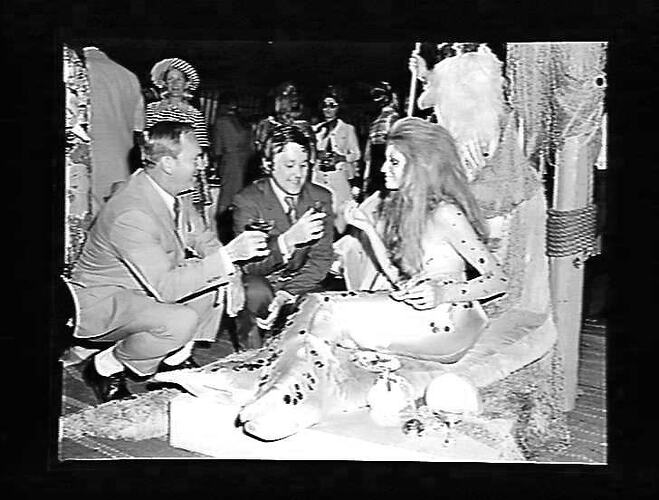 Fishbowl Neptune promotion: 'Mermaid' seated at reception.