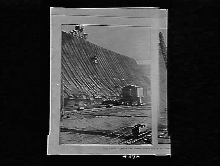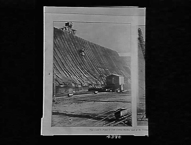 Yallourn open cut coal face. (nb. Caption beneath reads 'types of coal cutting machine used at the fortuna...' the fortuna mines are near Cologne, so this, probably, is not Yallourn.).