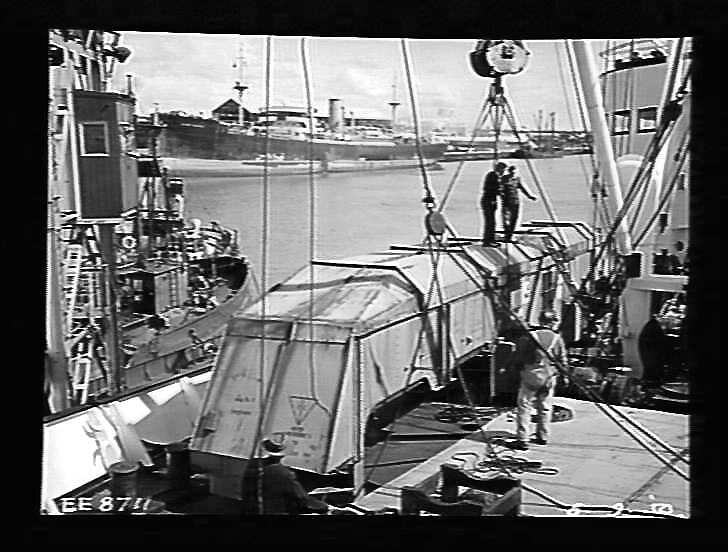 Unloading from SS Toumai of briquette dries (drier?) plough.