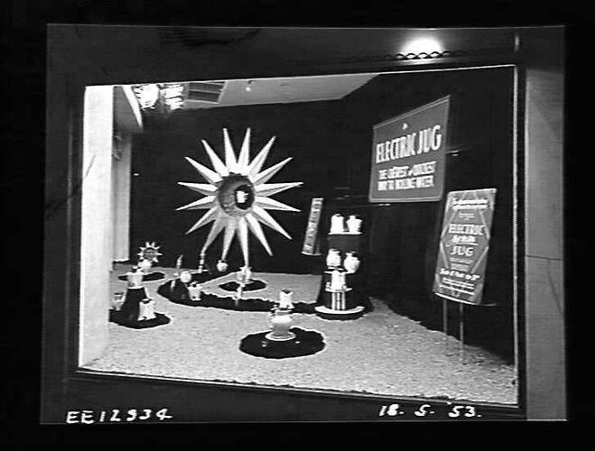 Display window, Flinders Street -'An electric jug - the cheapest and quickest way to boil water'.