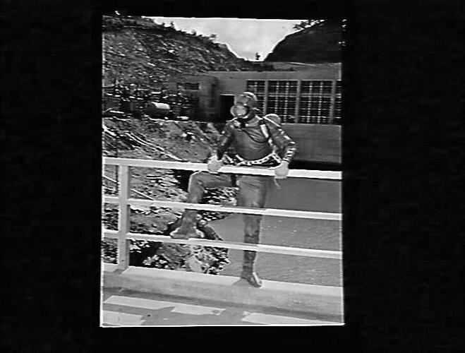 Frogman (Geoff Boardwen) at Eildon Pumping Station.