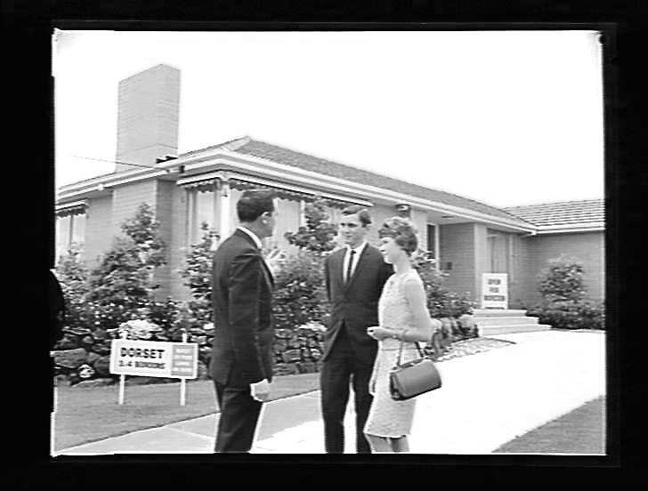Home buyers outside house: (Dorset, 3 & 4 bedrooms).