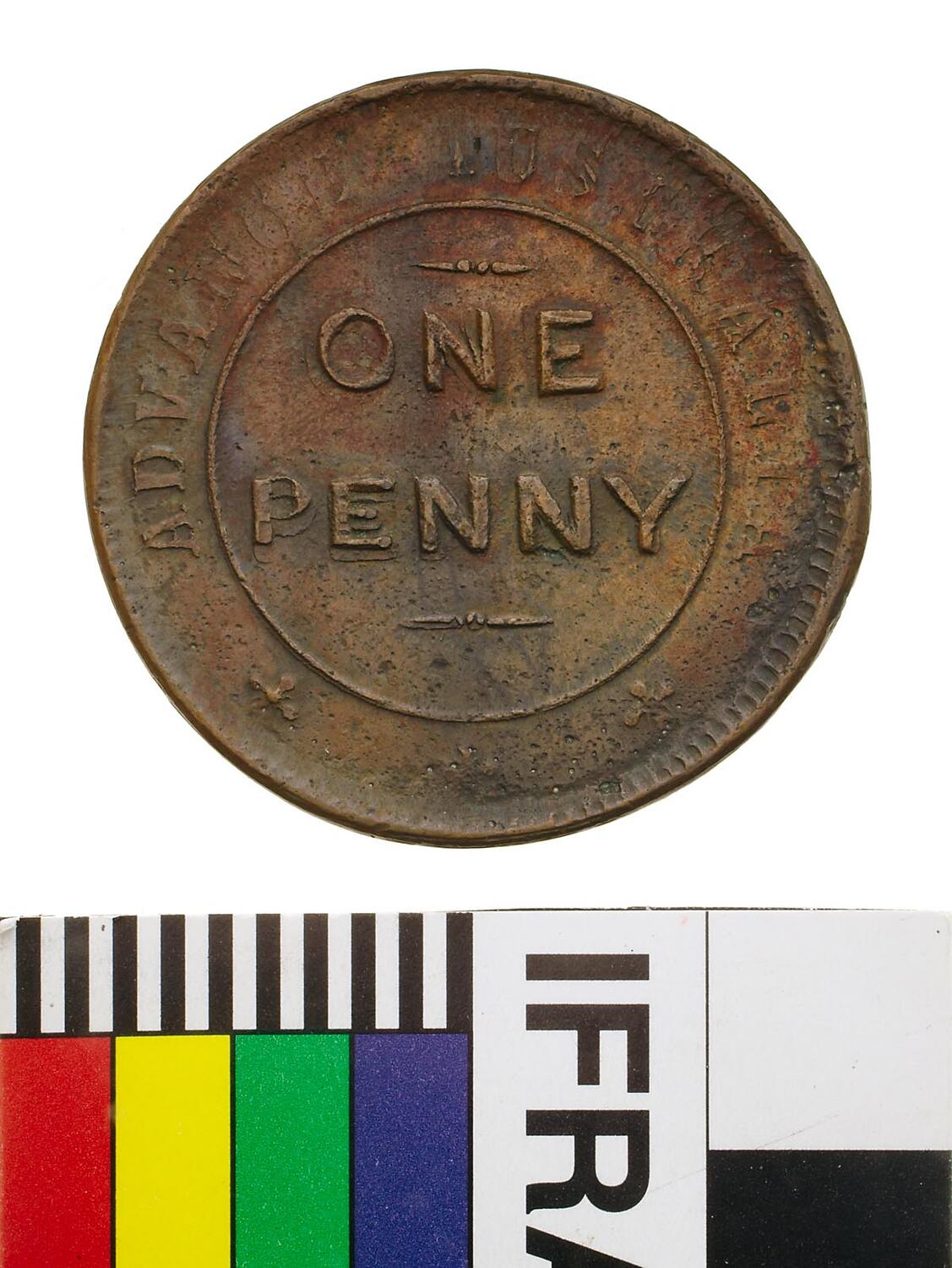 At centre within line circle, ONE / PENNY; around, ADVANCE AUSTRALIA +++