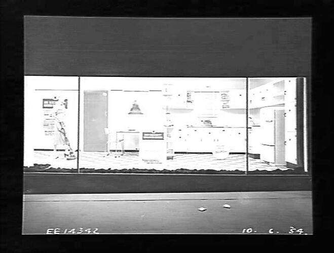 Window display, Flinders Street - kitchen: 'How electricity helps in the kitchen'.