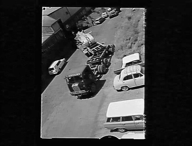 Richmond No.10 dredger being transported on low loader.