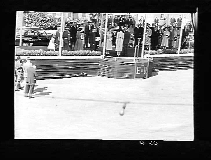 H.M. Queen Elizabeth & HRH Duke of Edinburgh. Yallourn 3/3/54 general view of dais.