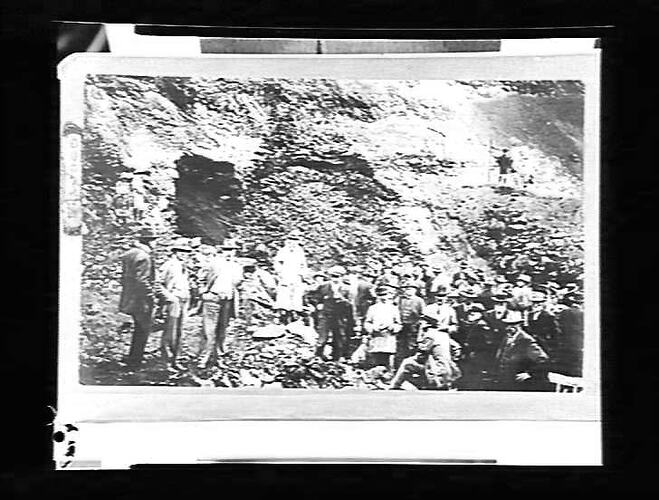 Parliament visit 1917 Yallourn (includes Hyman Herman and Sir Alexander Peacock, Premier of Victoria in group on left).