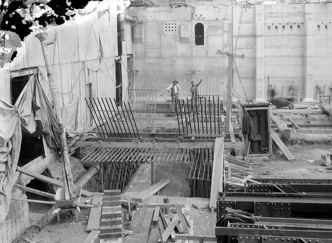 Construction at Yallourn 'B', excavations in the turbine hall lowest floor. (NB: negative damaged at upper left corner).
